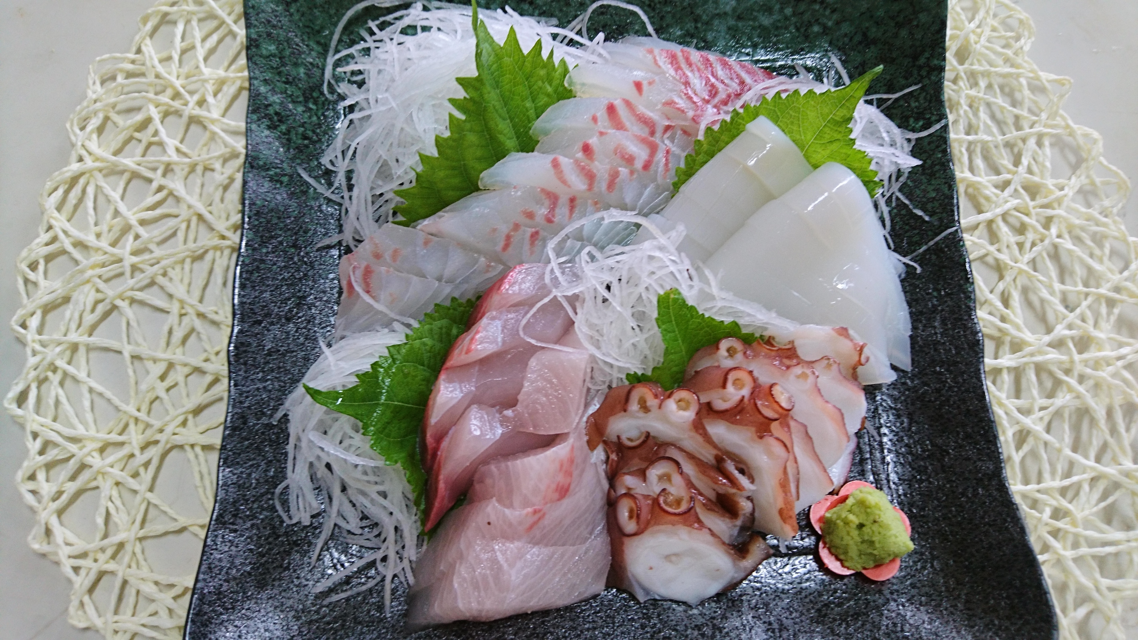 (イカ、サヨリ、貝柱、甘えび、マグロのたたき、タイ、サーモン)
